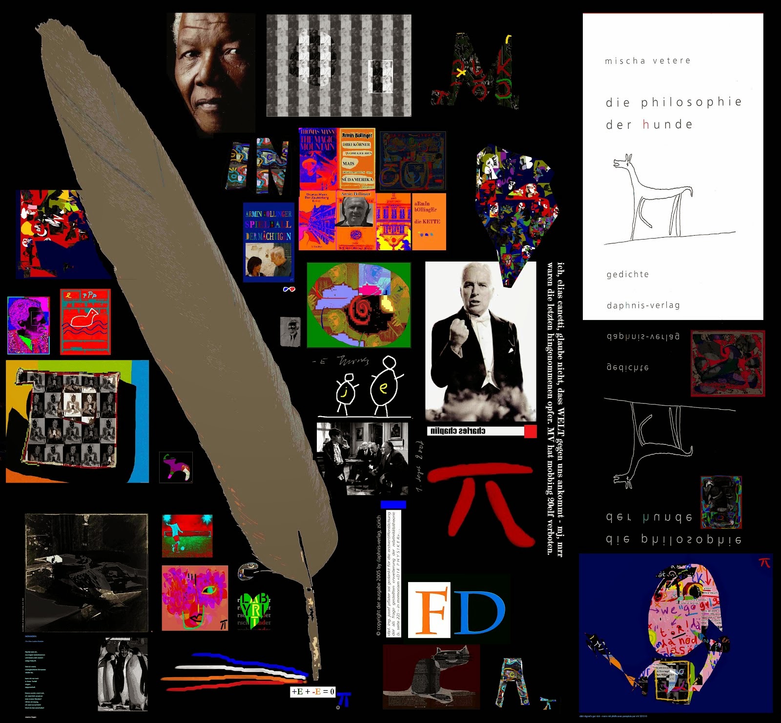 das bild von gestern heisst "dgf vs DGR" - dgf = das geistige gefängnis i.m. H für HÖLDERLIN (turm) und FD (auf bild klicken) : wir wünschten uns im ´freien westen´ manchmal einen mr. klecks ... welcher mit den geld- und machtspielen der milliardäre bbbb&b [LA CONCORDE, 9/11 (!), subprime crisis/GRIECHENLAND/strauss-kahn, fukushima, we key-leaks publikation vom 28.11.2010 aus der neutralen schweiz heraus (= aBlenkung von geplanter, verBotener apartheidELI (ausschaffungsinitiative mit gleichem abstimmungsdatum - me heis gmärkt...), gegen michael jackson (gestorben - schweizer treuhand?!), kachelm, wulff. in DE,, hildeb. in CH, die windsor prinzen in usa (romMELney) und FRANKREICH (mondadori = ital. b) entschieden aufräumte. mischa vetere 21.01.1320 (2013) - ICH BEFINDE MICH AB HEUTE IN MEINEM ZWEITEN MALSTREIK: seit ankung 20elf werde ich auf mittlerweile dem dritten computer gehackt, daten aufs gröbste manipuliert; zb heute: eine collage aus acht zwischenschlussarbeiten von je 1.2 mb ergibt ein file von 3 mb UND wenn eine arbeit den selbsternannten zensoren nicht genehm, hat sie dann 20 mb und mehr - HILFE KRIEGE ICH IM RECHTSSTAAT KEINE, sondern bin i.m. Arimin Bollinger (1913-1995) "Spielball der Mächtigen", die mich wie eine weihnachtsgans ausnehmen, leben und werk schaden und noch ernsthaft glauben, trotz genannter fälle, es gehe irgendwie durCH ... dh trotz fdg/V, trotz der verirrung 1933-45; daher meine ANTWORT: als exil-schweizer leg ich in berlin-mitte mal VEHEMENT protesCHt ein. - wer i.m. kk als künstler hier bleibt, ist selber schuld? - ich hoffe nicht, dass dieser satz 20elf/2013 stimmt, aber ich beginne zweifel zu hegen, ernsthaft.